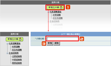 分類名稱: 輸入次分類名稱,按下新增即可完成。 |