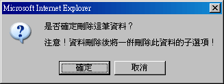 刪除分類時,會出現刪除警訊【注意!資料刪除後將一併刪除此資料的子選項!】,所以請務必確認後再刪除,以免辛苦建立的資料毀於一旦。 |