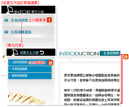 單元介紹選單:此處顯示主分類選項,點選進入單元內頁。 |