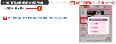 關於自訂頁面系統如何操作,請參考「自訂頁面系統」操作手冊。 |